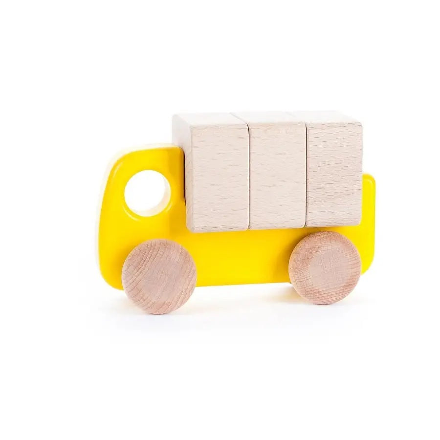 This small yet fun wooden toy is great for any child. The blocks can easily be removed and put back. This little car trucks along, moving swiftly and smoothly across any surface. Let your imagination run wild as you play with this endearing wooden car with blocks.
