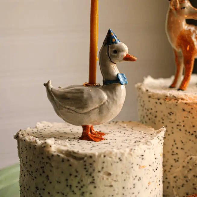 The best party guests come dressed to impress. Clad in a charming blue bowtie and matching cap, this Goose Cake Topper aims to be the belle of the ball at all of your future celebrations. Brining a touch of whimsy and a ton of cuteness to all of your cakes and culinary creations, the Goose Cake Topper is a must-have for kid's parties and grown-up soirees alike.