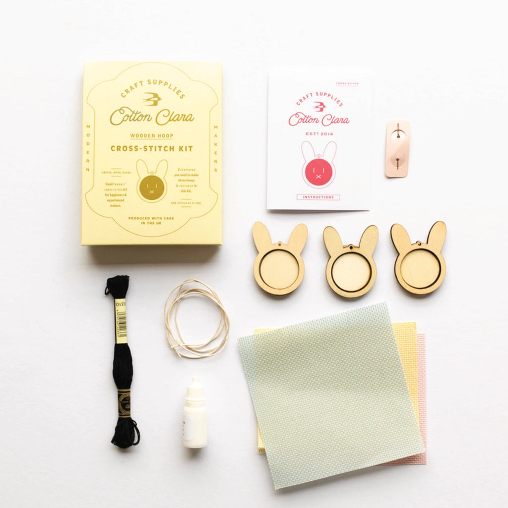 Everything required to complete this kit is included: hoops, fabric, thread, needle, craft glue, twine to hang and instructions.