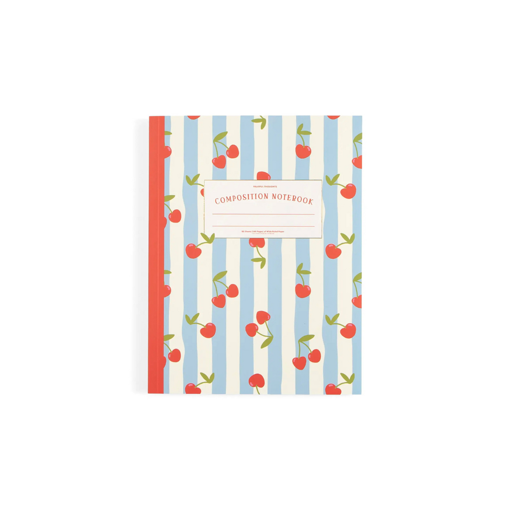 Add a fun, fruity flair to your note-taking with our Cherry Stripe Composition Notebook! This vibrant notebook features a playful design of red cherries against a classic blue and white striped background, making it the perfect accessory for school, work, or creative projects. Whether you're jotting down ideas, writing in your journal, or taking notes in class, this notebook brings a pop of color and fun to your writing routine. Ideal for anyone who loves a sweet touch of whimsy in their daily life, the Cherry Stripe Composition Notebook is a great gift for students, writers, or anyone who enjoys a bit of retro charm in their stationery collection.