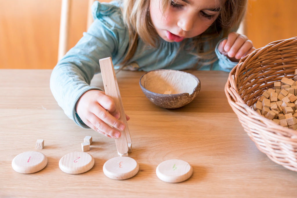These coins in natural wood with round shape with slightly curved edges are very pleasant to the touch, allow the child to learn while playing. Play to exchange, collect, order, add and subtract.