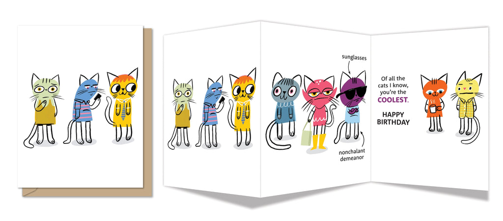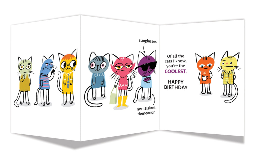 Designed by award-winning picture book illustrator & author, Bob Shea. This tri-fold design is high-end digitally printed on premium quality FSC Certified paper and comes in a recyclable clear plastic sleeve. It is accompanied by a premium-quality, Kraft colored, 100% recycled envelope.