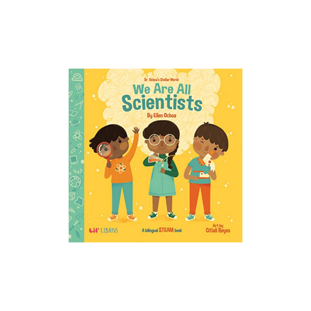In the first in series, Dr. Ochoa’s Stellar World, of STEAM concept board books, We Are All Scientists / Todos somos científicos, Dr. Ellen Ochoa explores how children have an innate drive for discovery. Science is all around us, and children are born with a keen desire to explore, making them natural scientists.