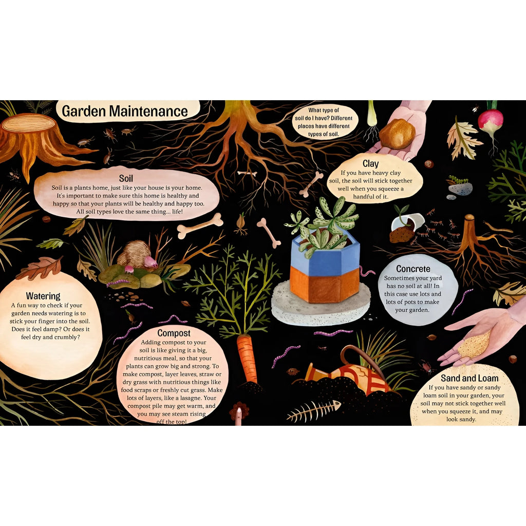 An introduction to easy gardening so you can grow everywhere and anywhere. Whether you live in the city or the countryside, there are plenty of places you can plant and grow. For a new generation of green fingers there are different ways to bring nature into the home. Make your own pots, build balcony boxes, create your own bird feeders and even get friendly with worms! Each activity has been carefully chosen to create living, renewable, and sustainable environments for kids and their families. Each activity has been carefully written by Kirsten Bradley, a leading practitioner in permaculture for kids and co-founder of Milkwood permaculture farm in Australia. The simple steps and beautiful spot illustrations make activities fun and easy to follow. The book will also feature non-activity spreads explaining the importance of why and how nature works. Illustrated by Aitch, a Romanian artist whose folkloric illustrations pay homage to vintage botanical books while giving each page a sense of modern magic.
