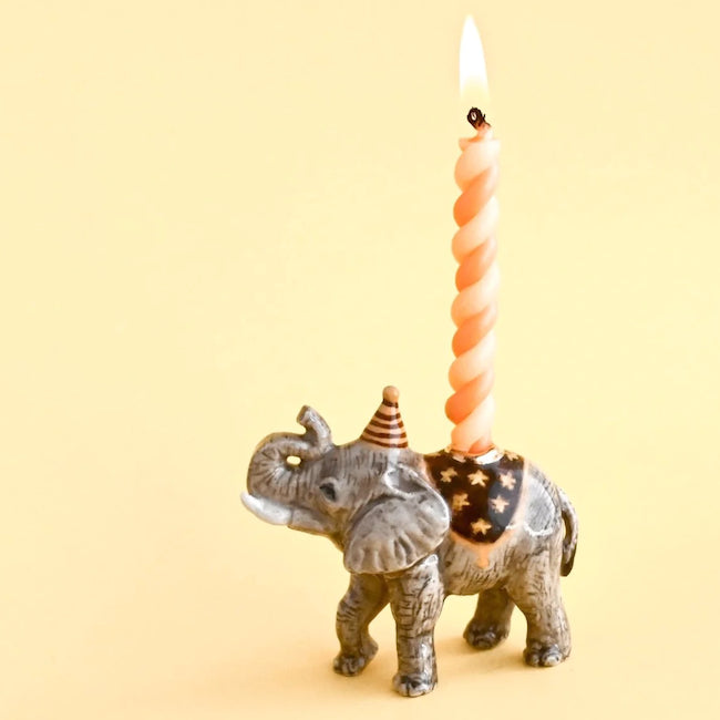 Transform your celebration into a whimsical affair with the Elephant Cake Topper. Crafted from heirloom-quality porcelain, this hand-painted masterpiece captures the playful essence of this beloved creature. Adorned with a festive party hat, it's the perfect addition to birthdays, weddings, or any special occasion.