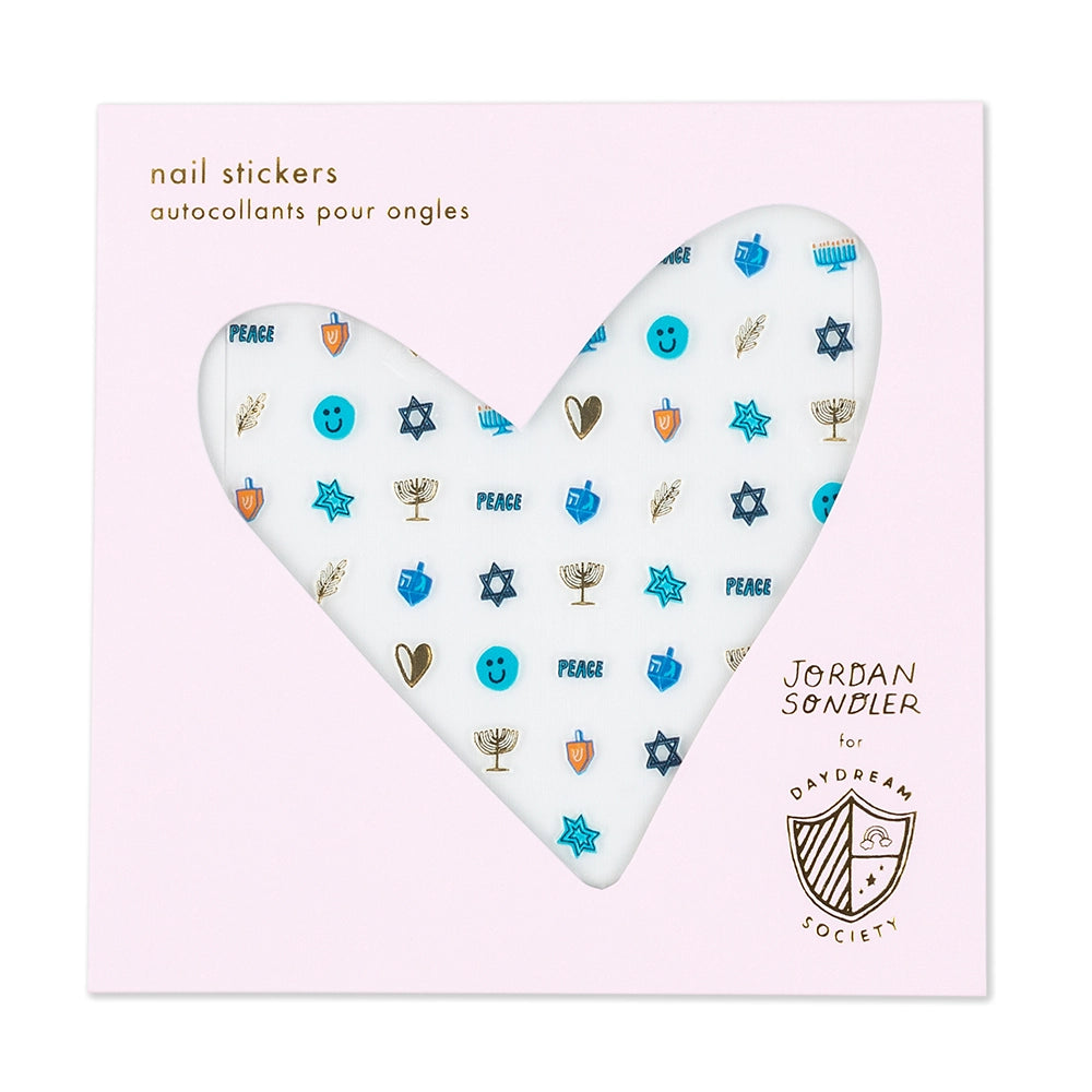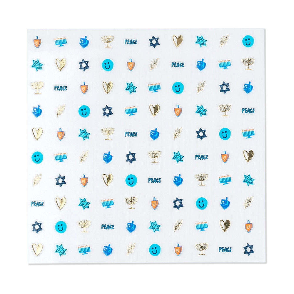 Mazel Tov! Featuring a blue color palette and gold foil elements, these festival of lights stickers are sure to make your nails sparkle and shine this Hanukkah. Plus, these nail stickers are perfect for party favors or small gifts!