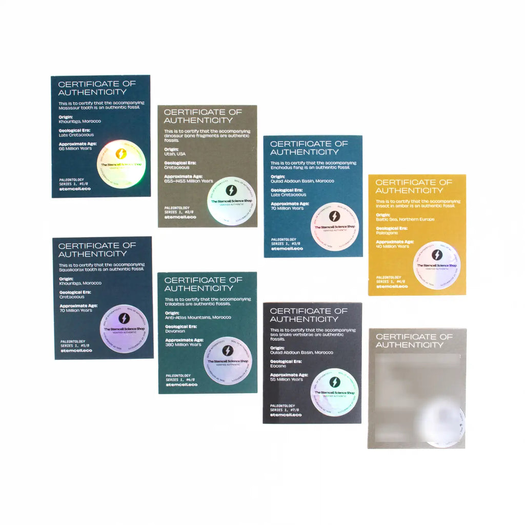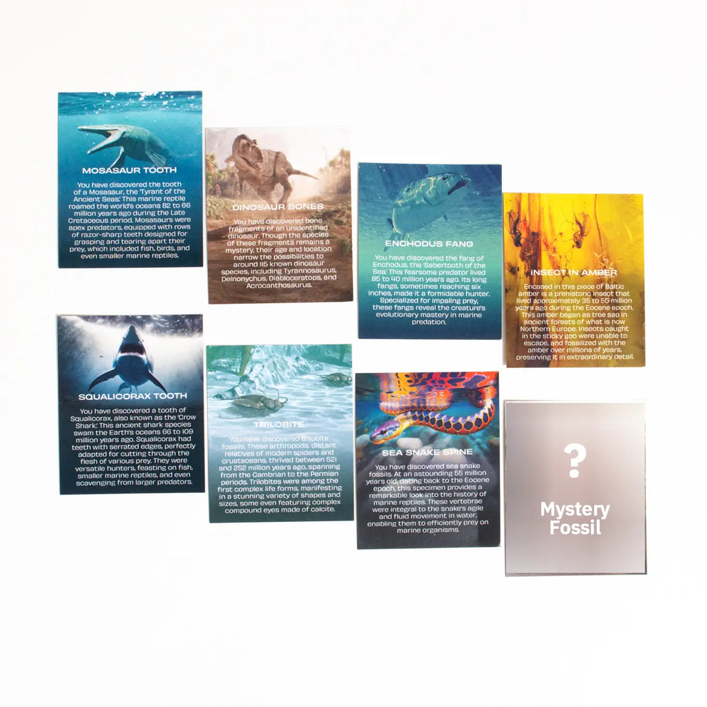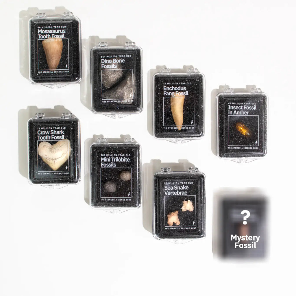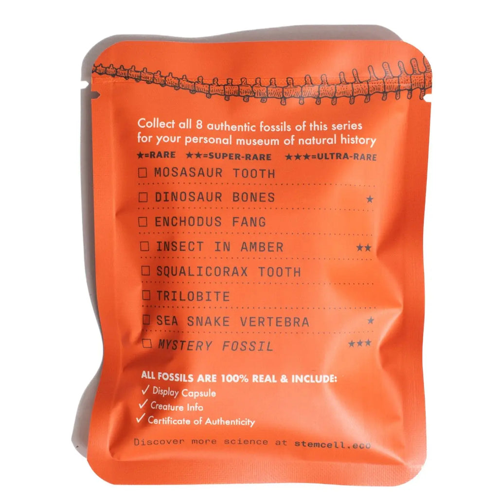 Each blind bag in this series includes one of eight authentic prehistoric fossils! These fossils range from 40 million to 380 million years old. Every fossil includes an information card about the creature, a certificate of authenticity, and a protective display capsule. Since these are authentic and natural fossils, expect some slight variation in size, shape, coloring, etc.