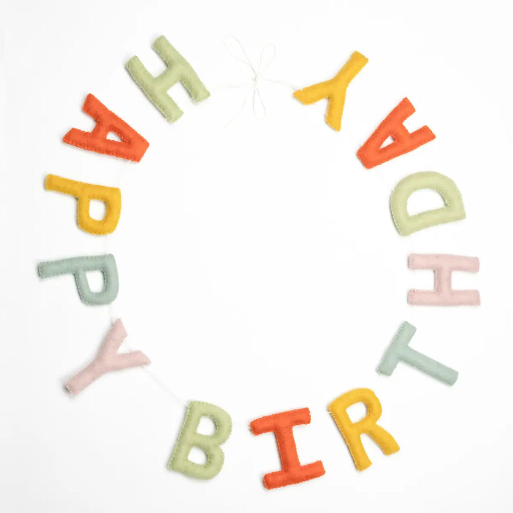 Celebrate Birthdays with this pastel banner, hangs horizontally. Garlands are perfect decor, hang on the mantel, a shelf or even a cupboard.