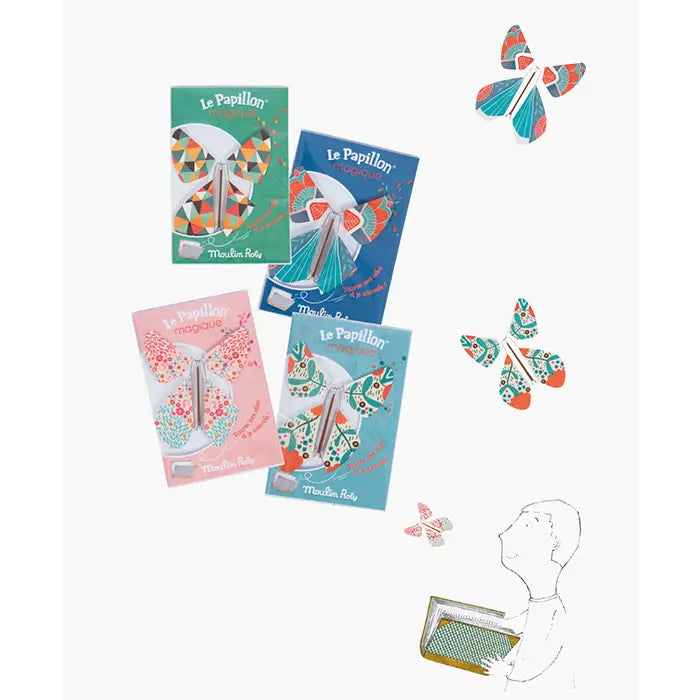 Turn the wings of these pretty colorful printed butterflies several times and slip them inside a book or a card. Butterflies will fly away upon opening.