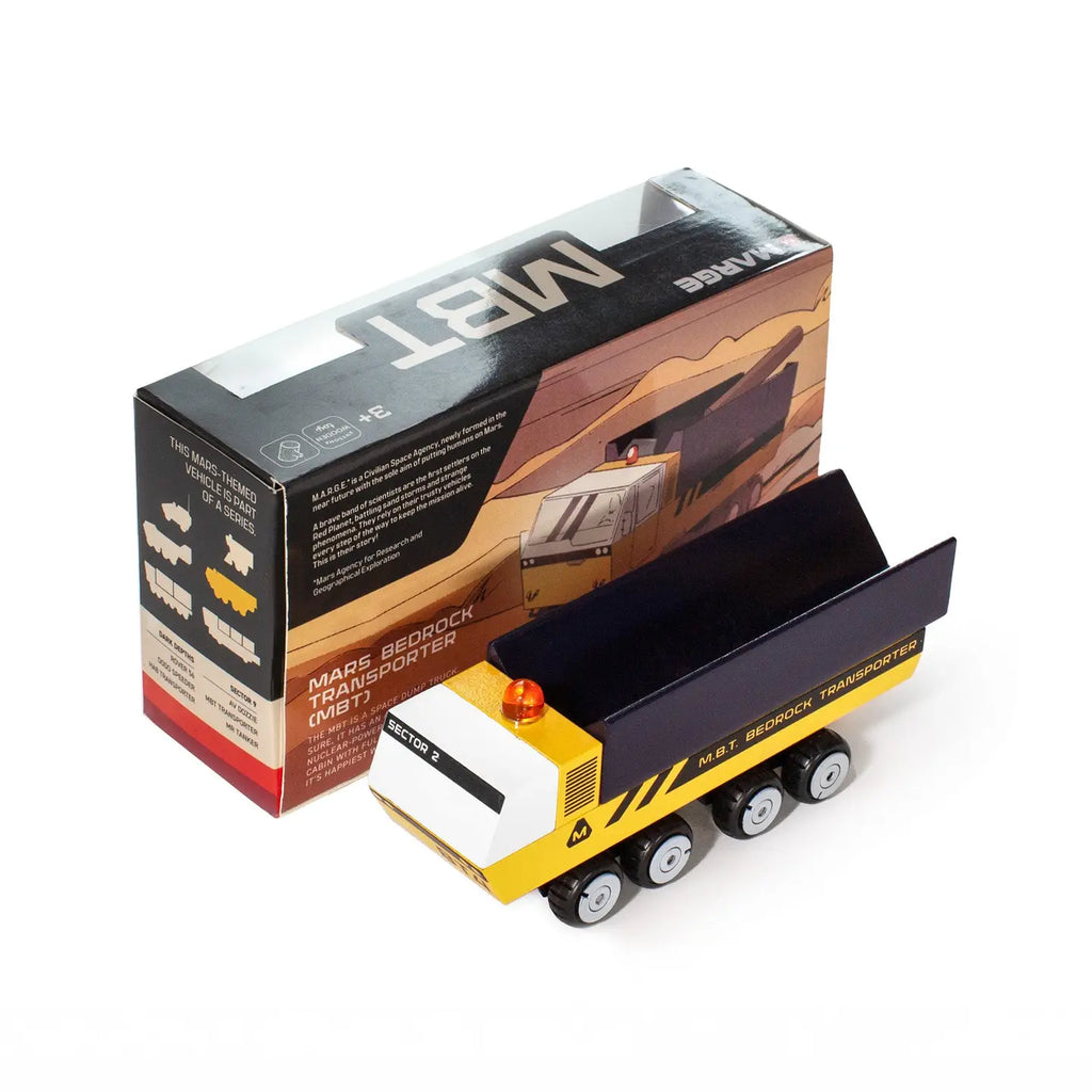 Equipped with a suspension base, the MBT (Mars Bedrock Transporter) is built to haul the red rocks of Mars, like a dump truck!