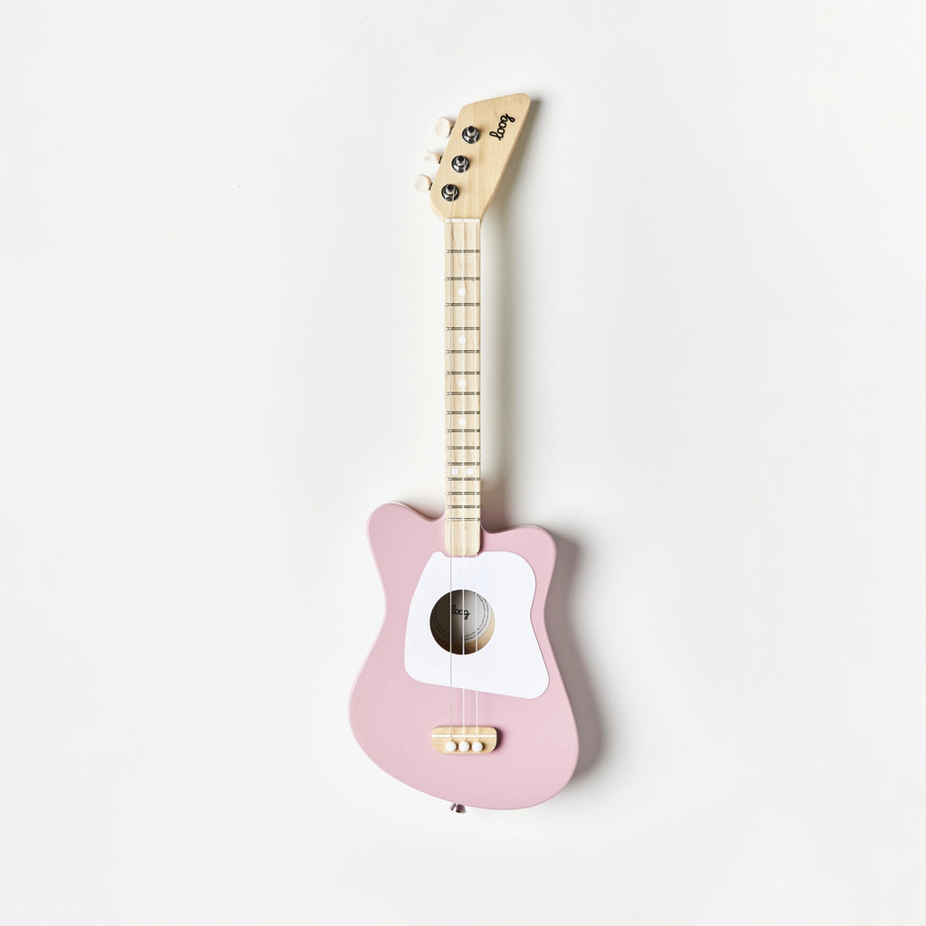 Learn on a Loog, play any Guitar. Loog guitars use the first three strings of a guitar: same strings, same tuning. This is why finger placement and everything you learn on a Loog can be applied on a 6-string guitar too. It's a seamless transition that allows kids to learn on a Loog and then play any guitar.