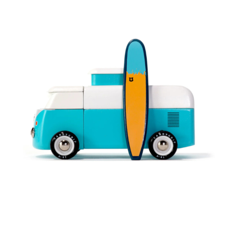 Officially licensed by VW - check out the shiny emblem on the front. This iconic Volkswagen Type 2 comes with a magnetic camper top and surf board