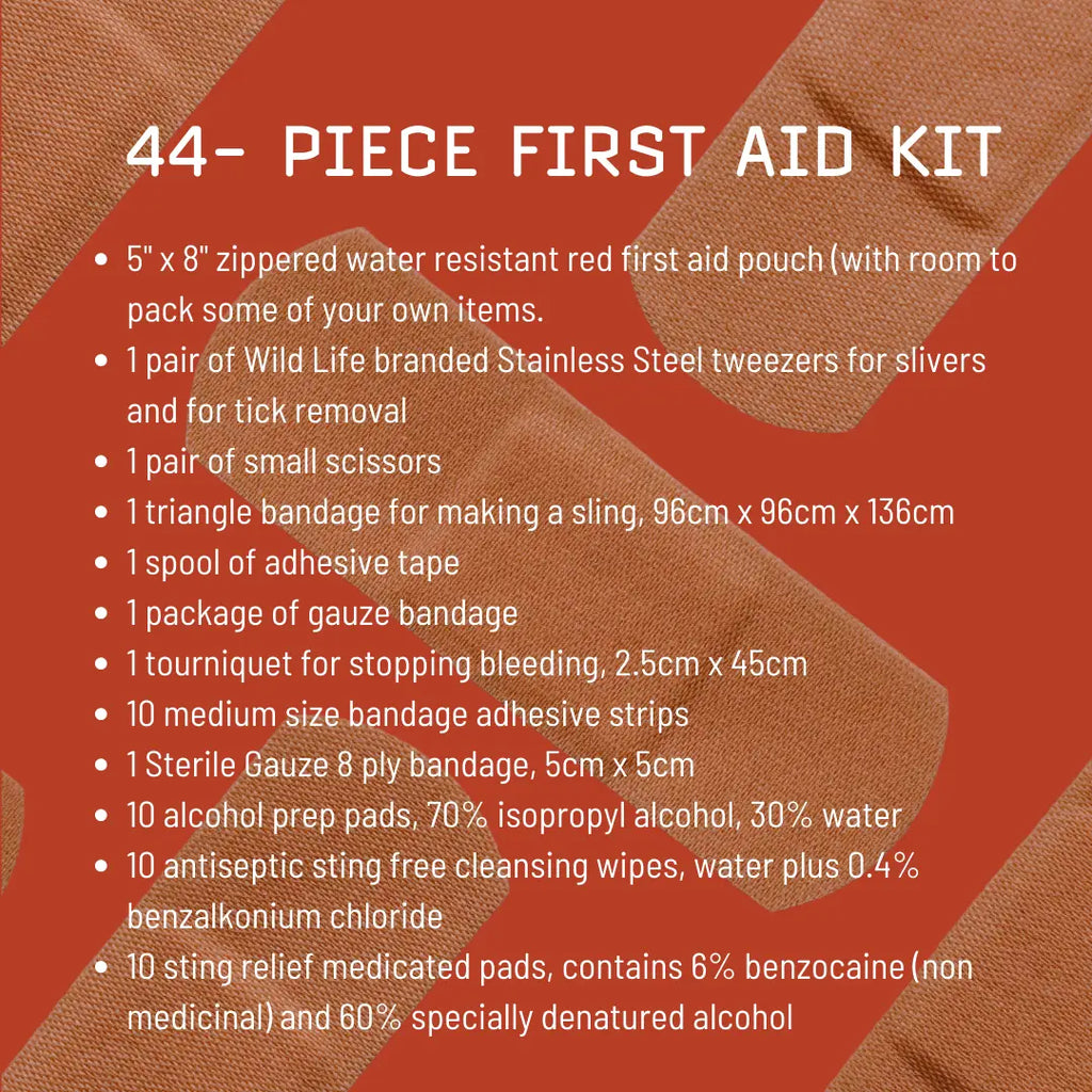 Be prepared for all types of minor injuries with this compact but very well stocked kit. From simple scrapes and cuts to bee stings, itching, minor burns scrapes, insect bites and ticks, and other minor injuries this kit comes with the following items to assist you: