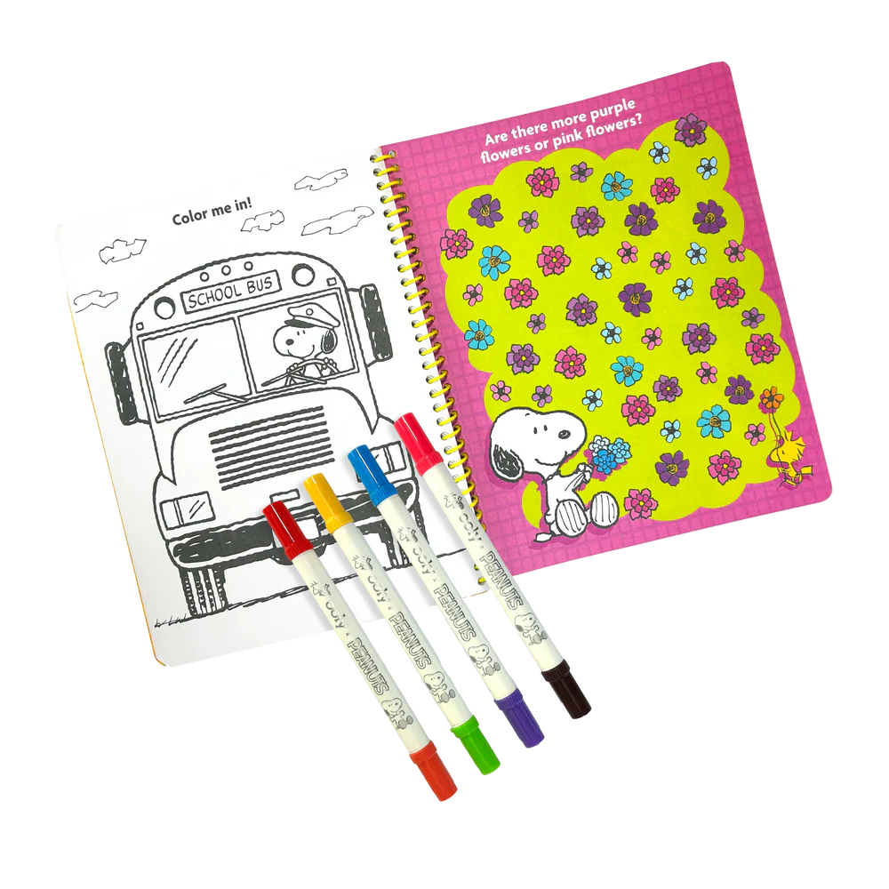 Hours of fun can be had with the Peanuts Activity Travel Kit featuring Snoopy, Charlie Brown, and the Peanuts gang! Packed with a 60-page activity book full of puzzles, games, and coloring sheets, this travel kit is perfect for kids who love the Peanuts gang’s adventures. The set includes 4 double-ended markers with 8 colors and 2 sheets of Peanuts-themed stickers. With these travel games for kids, you can help Linus find his blanket or color Snoopy’s next big adventure. This activity kit is full of fun for kids and Peanuts fans of all ages.