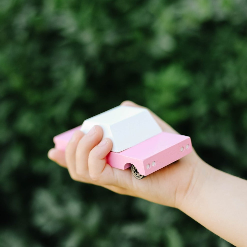 • Materials & Info: Solid Beech Wood, water-based paint, and clear urethane coat. ABS plastic rims, with plastic tires.