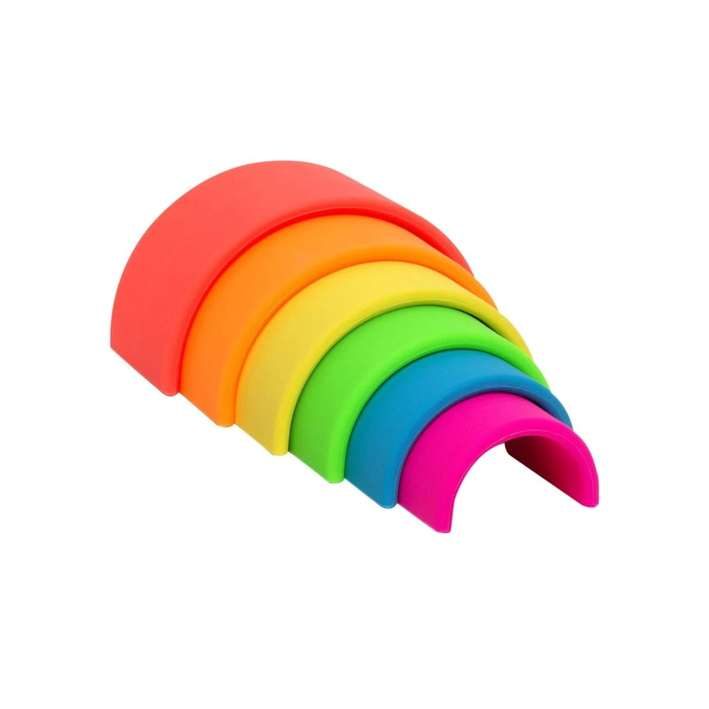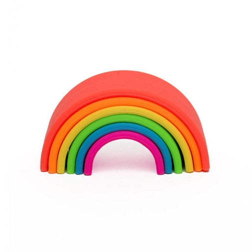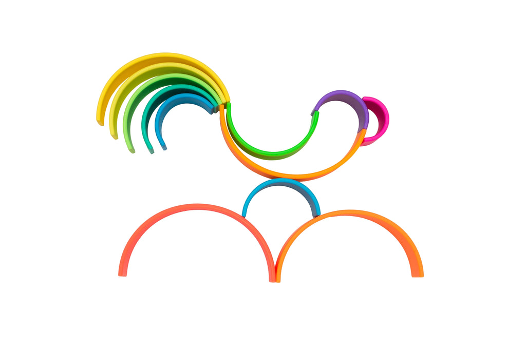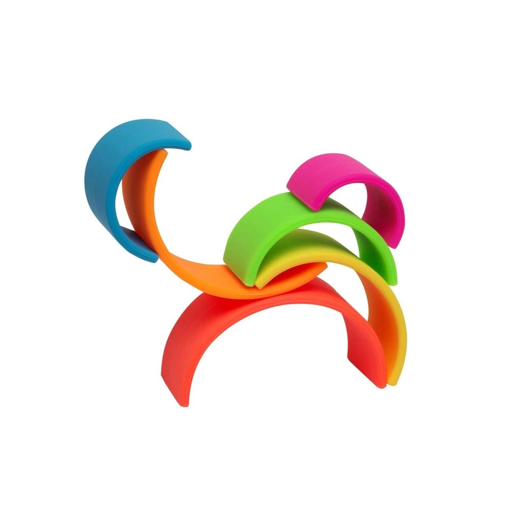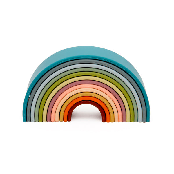 This simple rainbow toy stimulates play in babies from birth. The Rainbow Stacking Toy consists of soft, colorful silicone arches that stack inside each other. It’s made of the same quality silicone used for pacifiers and teething rings, making it safe, strong and bacteria resistant. The Rainbow Stacking Toy is also dishwasher-safe, hypoallergenic and BPA-free.