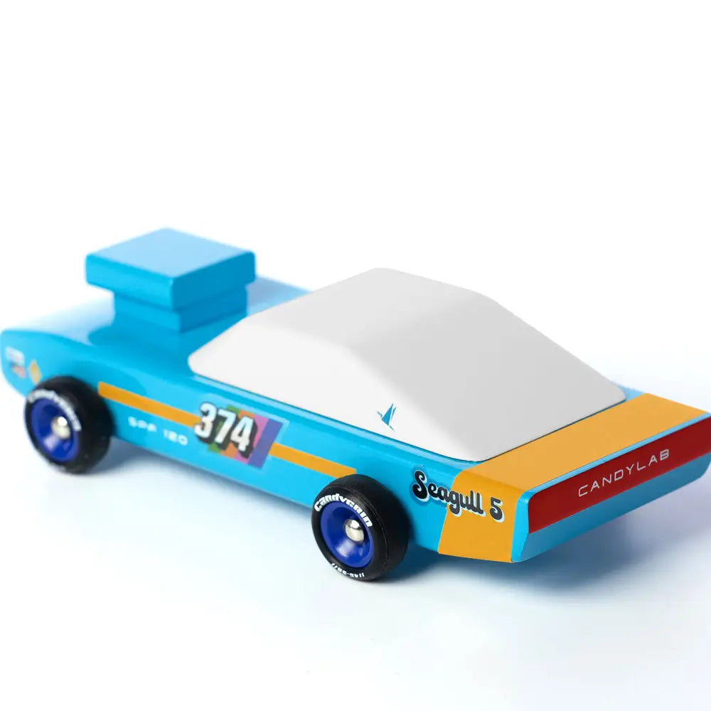 Seagull Blue: Taking inspiration from the huge superchargers, bold colors and playful graphics that defined 1970s racing, the Seagull 5 is a powerful machine that will give you all it's got, on or off the track.
