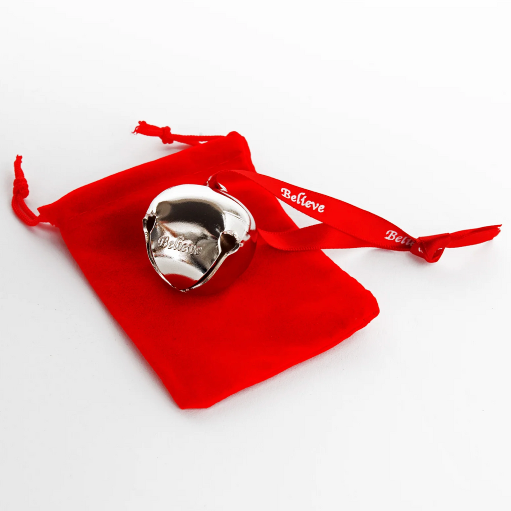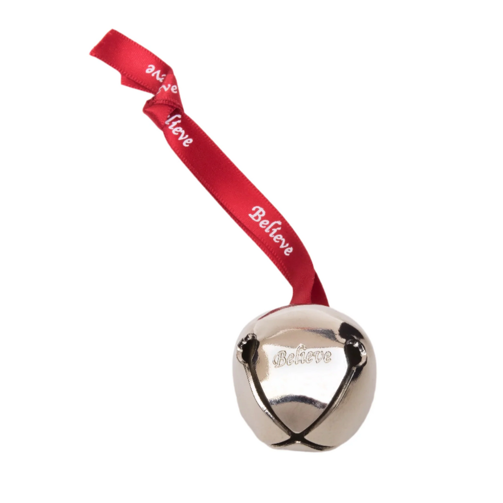 Celebrate the Christmas season and the joy of still believing with this 1.5″ high-quality sleigh bell ornament. It has Believe stamped into the bell and is strung with a Believe ribbon. A great gift - every bell comes with a velvet pouch.