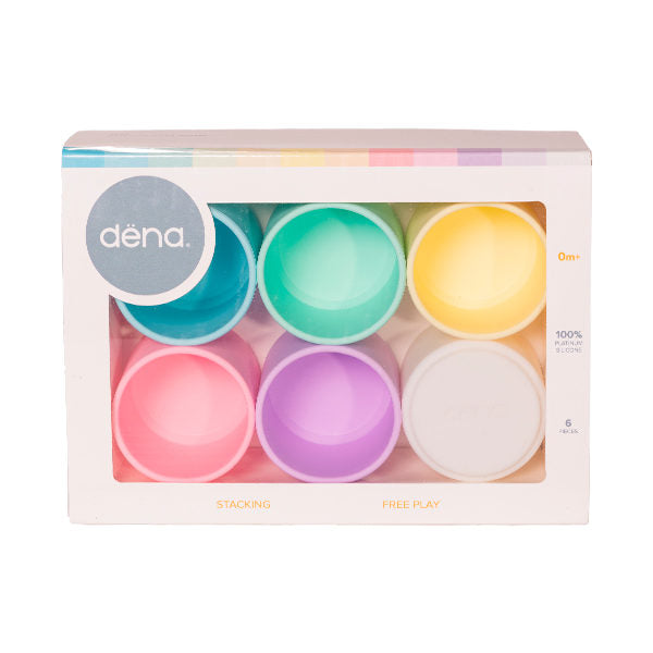 Classic stacking cups with a dëna twist! The soft yet high-quality silicone design allows for versatile use that develops motor, cognitive and sensory skills.