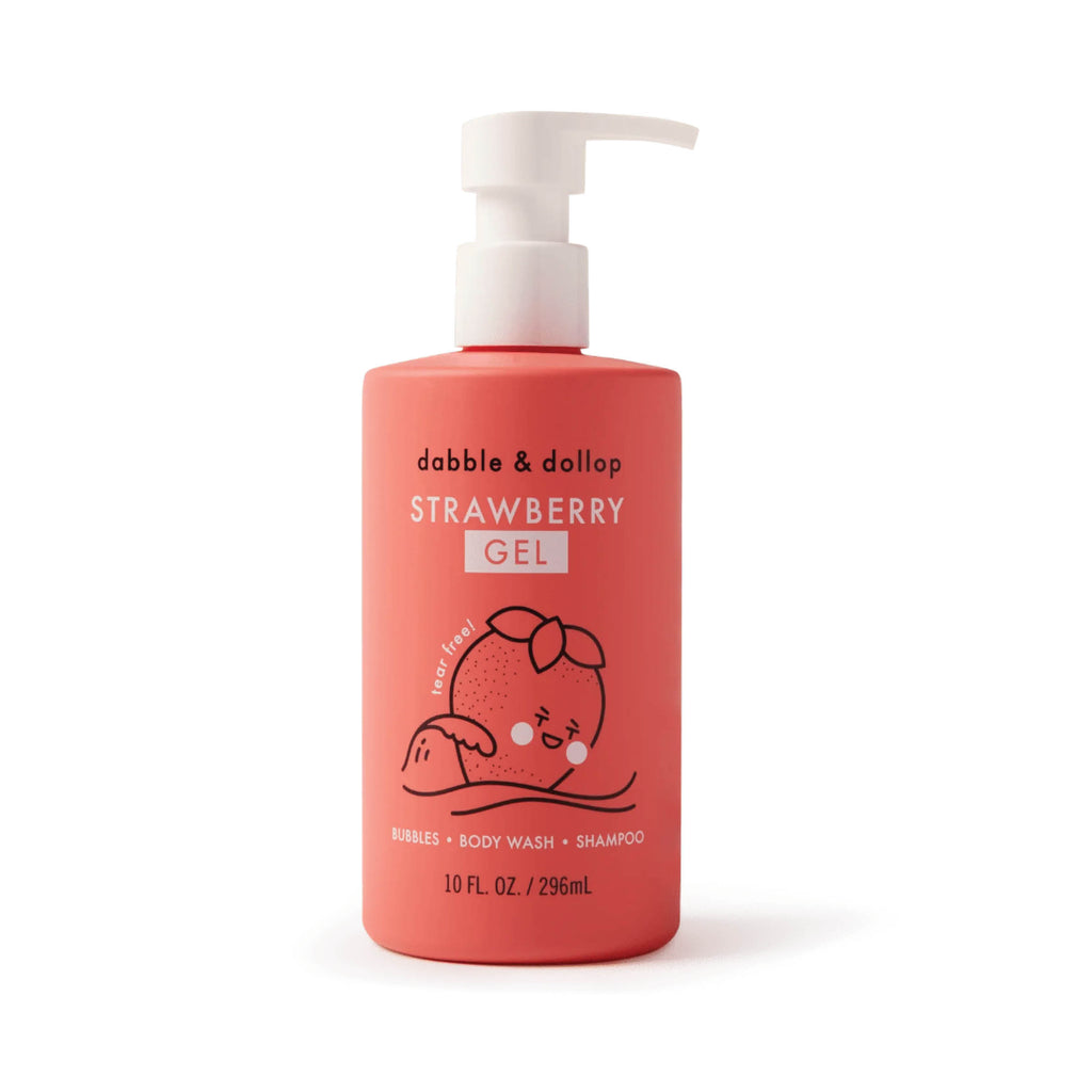 10oz of all-natural, tear-free, Strawberry 3-in-1 Shampoo, Body Wash & Bubble Bath. Made in the USA without any artificial fragrance, colors, or dyes.