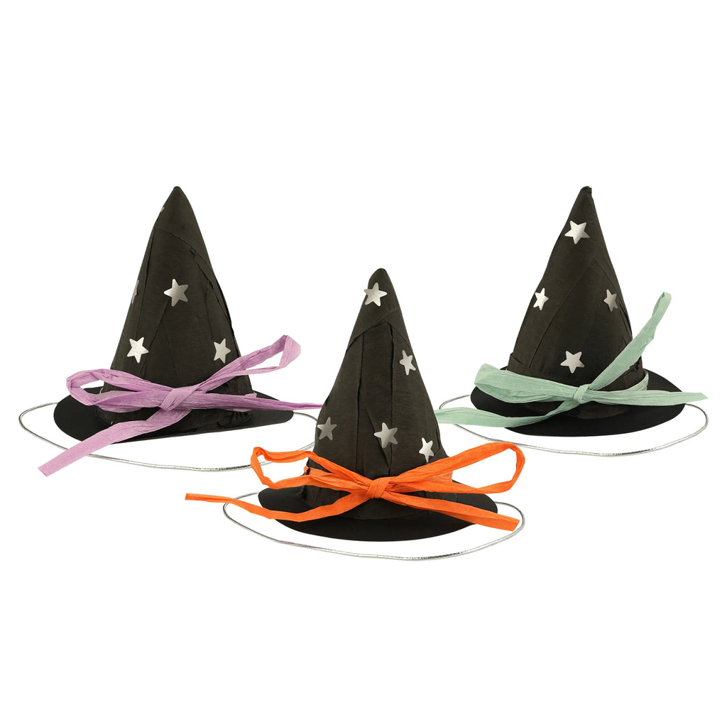Surprise! These special witch hats are the ultimate treat; stylish, giftable and decorative. When your guests can't wait a second longer, they can pull the layers of crepe paper to reveal the magical gifts inside.