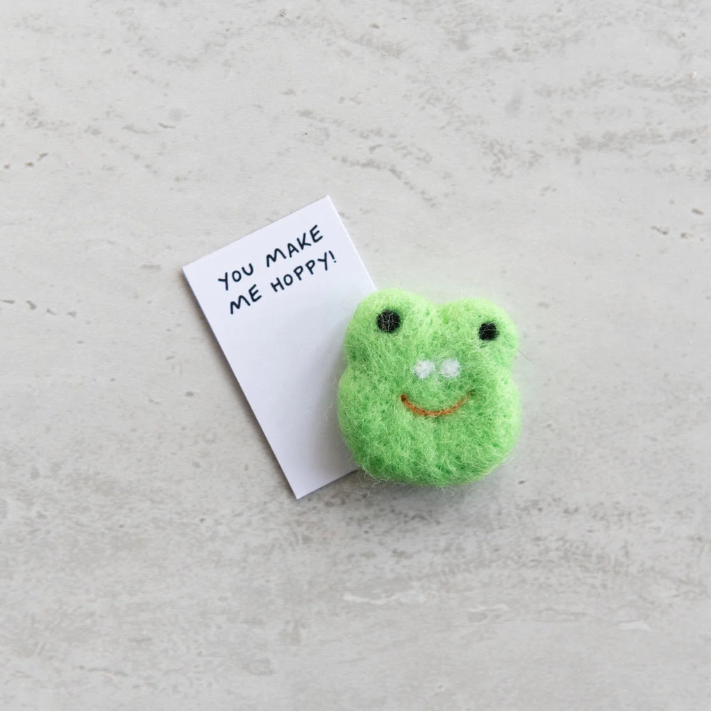 Open the matchbox to reveal a gorgeous handmade wool felt frog, and the message ‘You Make Me Hoppy!’