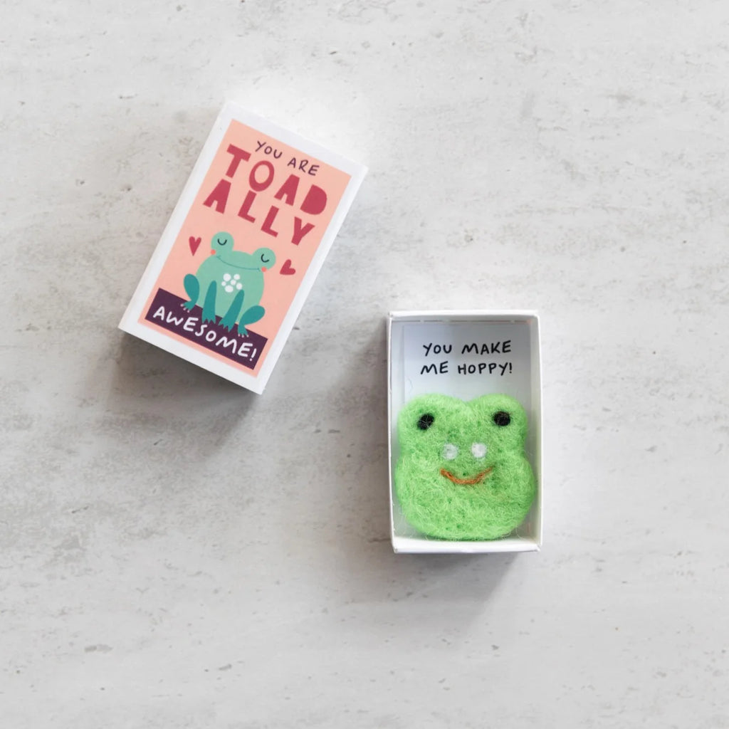 Show them how special they are, with this beautiful hand made wool felt frog in a matchbox. This cute matchbox with the message ‘You are TOADALLY AWESOME’, is a perfect gift for a loved one, to let them know how much they mean to you.
