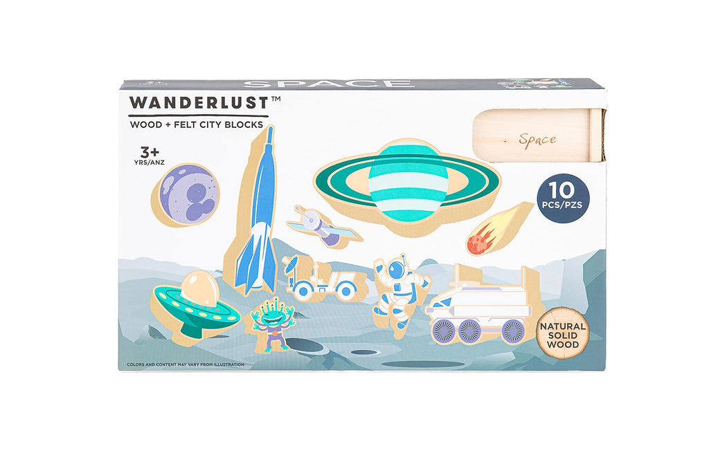 Wanderlust is a beautifully designed handcrafted wood and felt-themed playset. Complete with fantastic wood and felt blocks to explore and create.