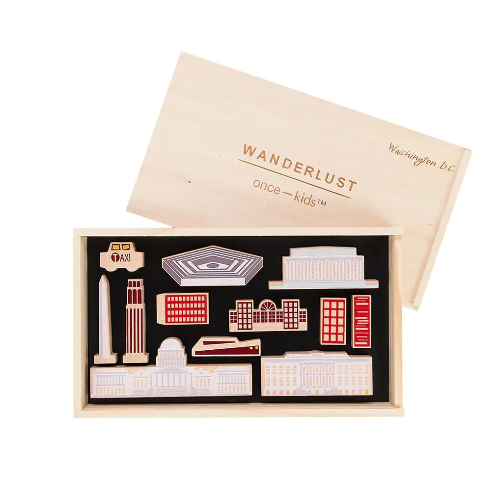 Wanderlust is a beautifully designed handcrafted wood and felt themed playset. Complete with the monuments and magnificent architectures of its' iconic city.