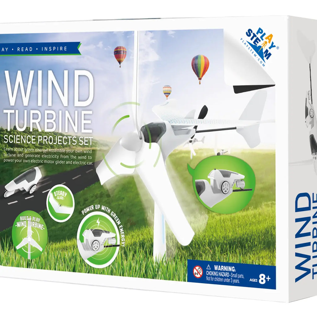 The Wind Turbine Science Projects Set teaches students about generating electric power with a wind turbine. Convert wind energy into electric power to charge the included motor glider and electric car! Fly the plane or run the car over and over after it is charged.