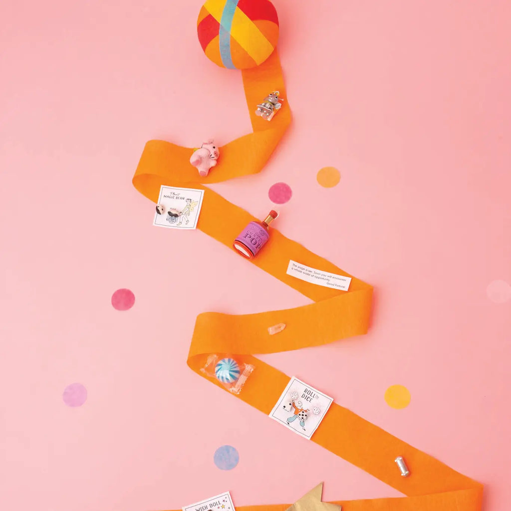 Unravel layers of colorful crepe paper ribbons to reveal a treasure trove of surprises tucked carefully within. These Surprise Balls are a nostalgic nod to the popular toy craze of the 1950s.