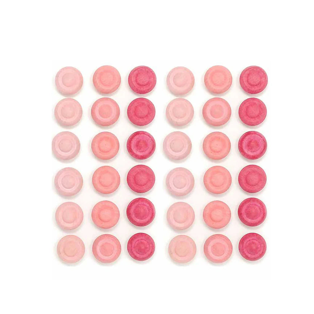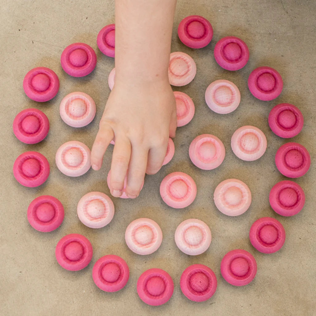 Thirty-six small flower buttons in graduated pink tones for creating mandalas and any other open-ended play. Lay them out in a pattern, mix and match, sort, etc!
