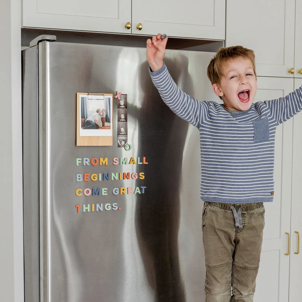 Elevate your inventory with the 200-piece modern magnetic letter sets. Each 1" letter is made from soft EVA foam with a full rubber magnetic backing, safe for kids aged 3 and up. Perfect for spelling simple to complex words, these magnetic letters offer educational fun. Perfect for birthdays, holidays, and homeschooling, stock the Rainbow Letter Set to enhance your collection with stylish, educational toys.