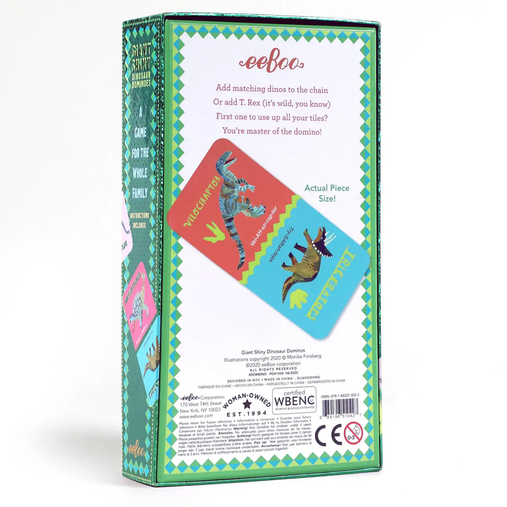 These beautiful jumbo dominoes add dinosaurs and shiny holographic foil to a classic family game that develops matching skills.