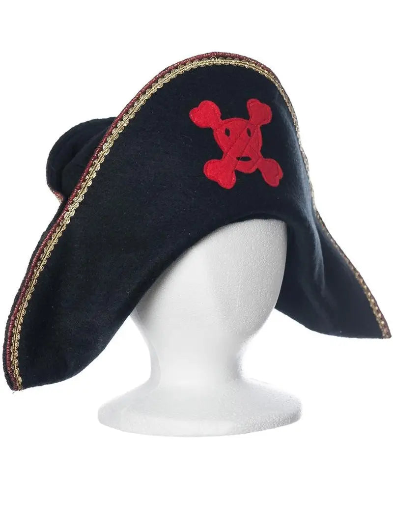 Travel the seas in high style with this handcrafted felt pirate hat. Hand-appliqued hat made from top quality 85% wool and 15% rayon felt made in the USA!