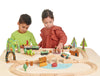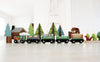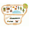 Included in this lumberjack style set is a log pile to hold the logs with a sleeping bear, a lake with 2 magnetized boulders and big bear, and a part that has 3 big fir trees that will block the track unless they are rotated out of the way! 4 cut timber logs and a tree nursery with