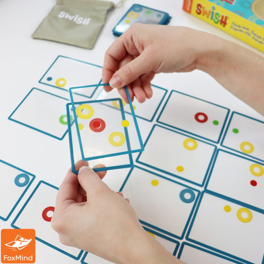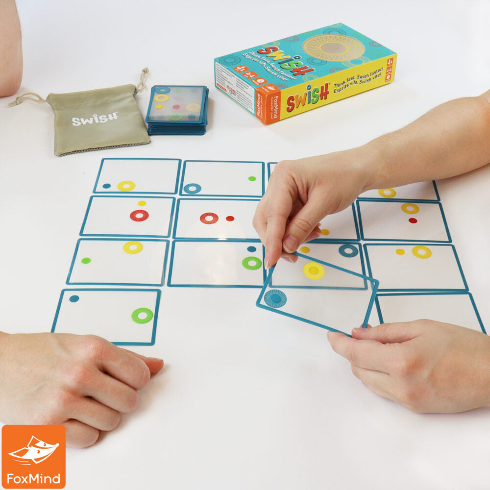 Swish is a fast-paced game that challenges your spatial thinking skills! Visualize how the cards can fit together in your mind to find the perfect match, and then make your move - Swish!