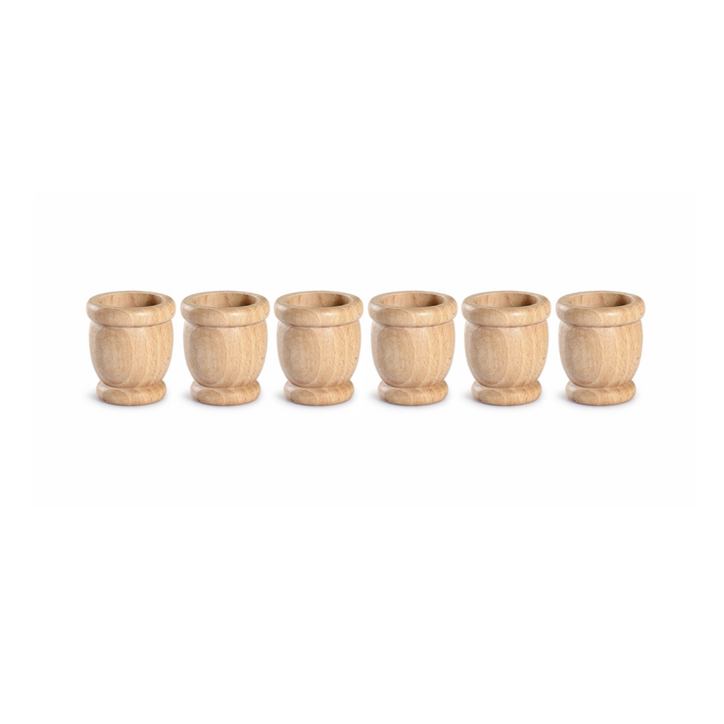 Six mates in natural wood for open ended play. Children can combine, relate, match, cover, fill, empty, rotate, stack or anything else they can imagine.