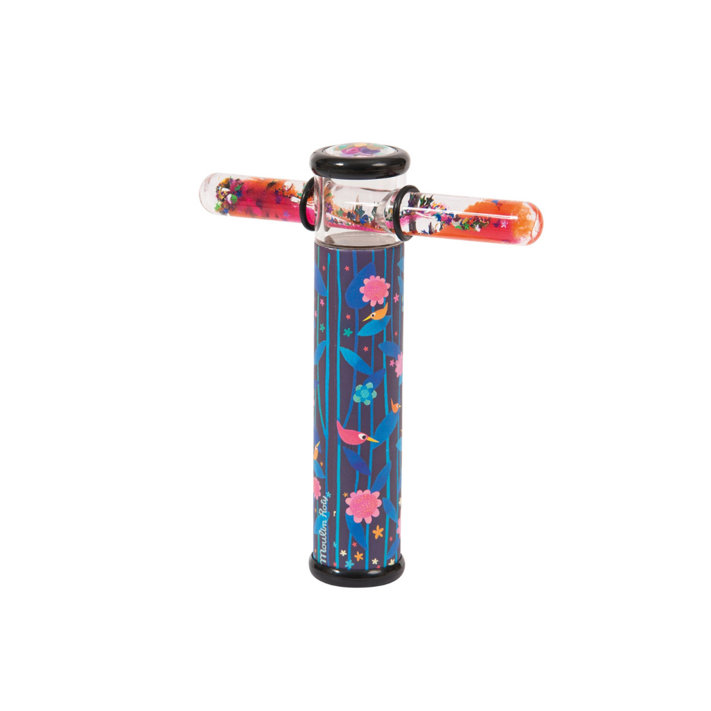 From the Little Wonders collection, a glitter kaleidoscope that offers checkered, floral and diamond patterns. As you look in the magnifying glass and turn, you will be amazed by the small mirrors inside that infinitely expand.