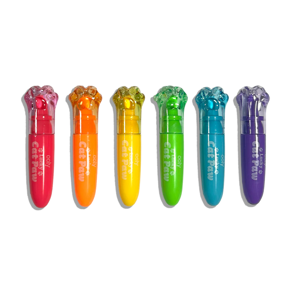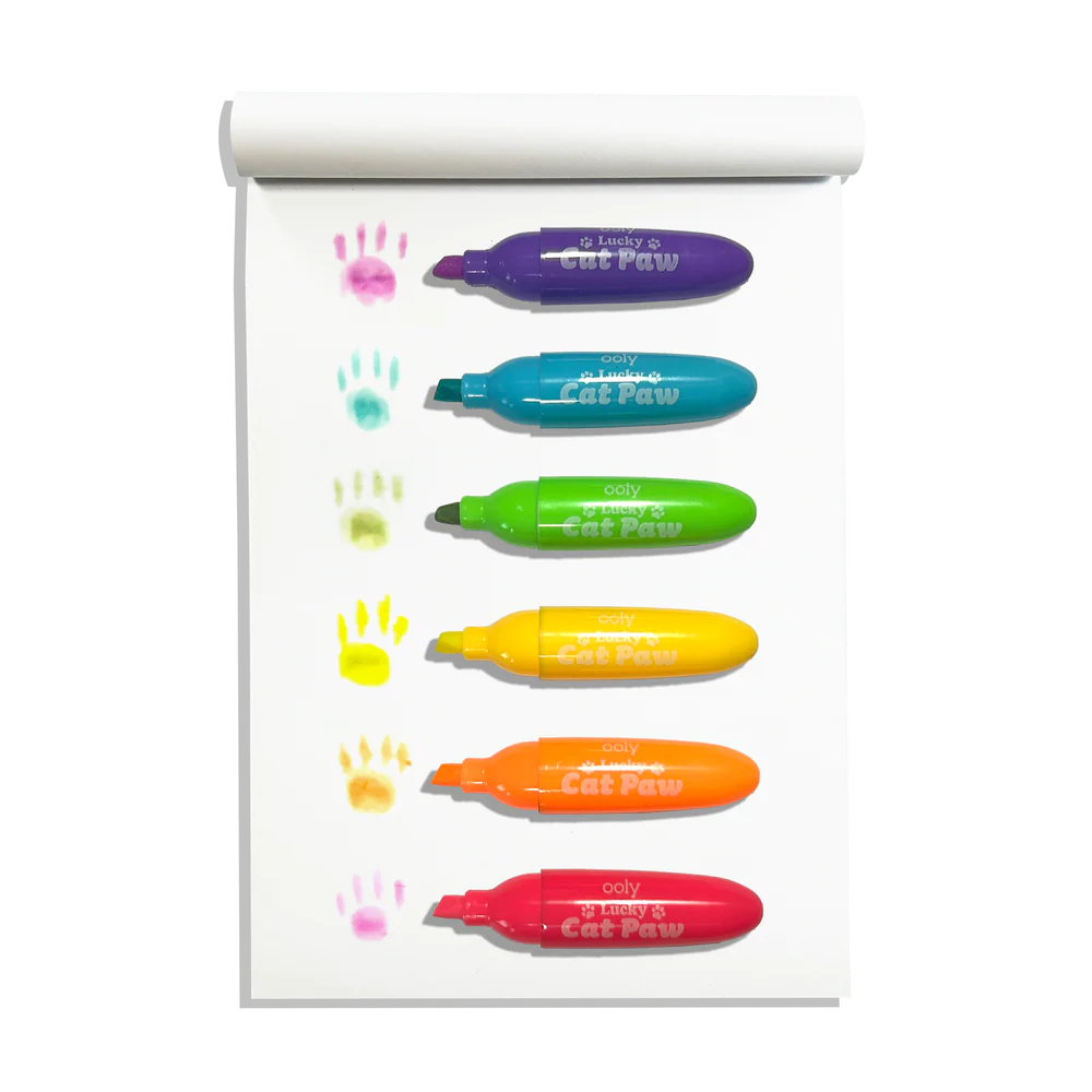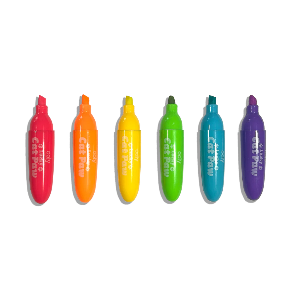 • A set of 6 scented mini highlighters in fun cat paw shapes