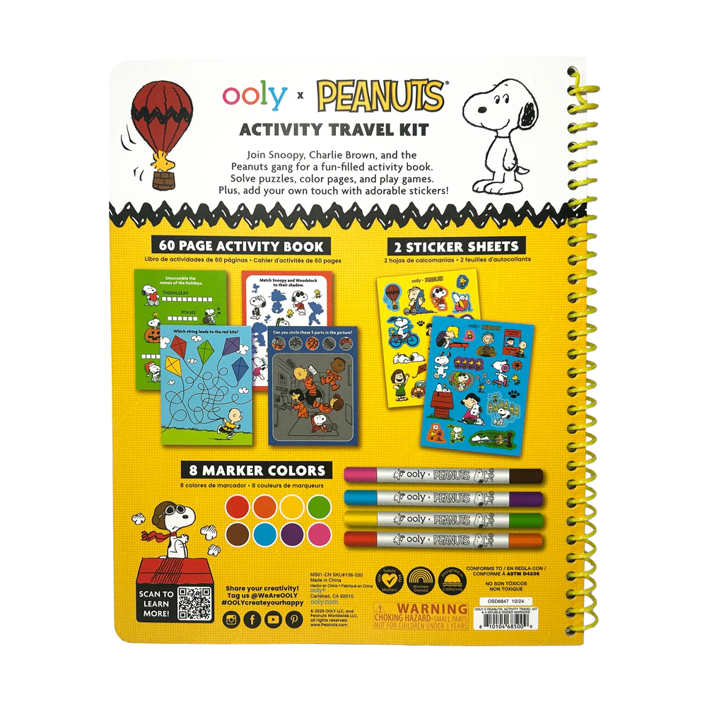 Hours of fun can be had with the Peanuts Activity Travel Kit featuring Snoopy, Charlie Brown, and the Peanuts gang! Packed with a 60-page activity book full of puzzles, games, and coloring sheets, this travel kit is perfect for kids who love the Peanuts gang’s adventures. The set includes 4 double-ended markers with 8 colors and 2 sheets of Peanuts-themed stickers. With these travel games for kids, you can help Linus find his blanket or color Snoopy’s next big adventure. This activity kit is full of fun for kids and Peanuts fans of all ages.