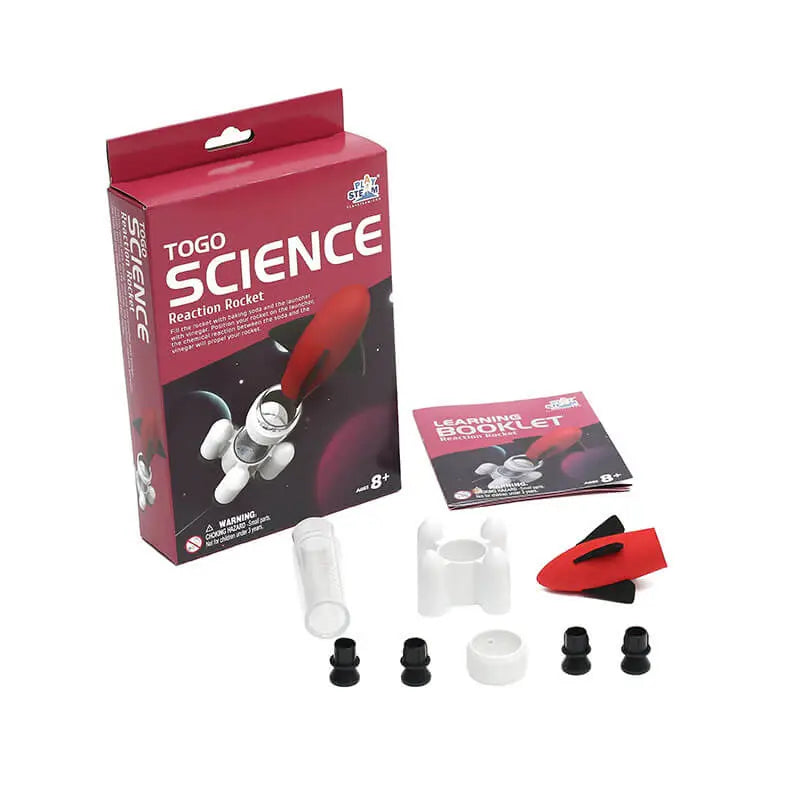 Initiate a chemical reaction from safe substances you find in your kitchen with the Reaction Rocket! Fill the rocket with baking soda and the launcher with vinegar to launch the rocket. Adjust the quantities of both to find the best formula to make the rocket fly the highest. A fun and interactive way to learn about chemistry.